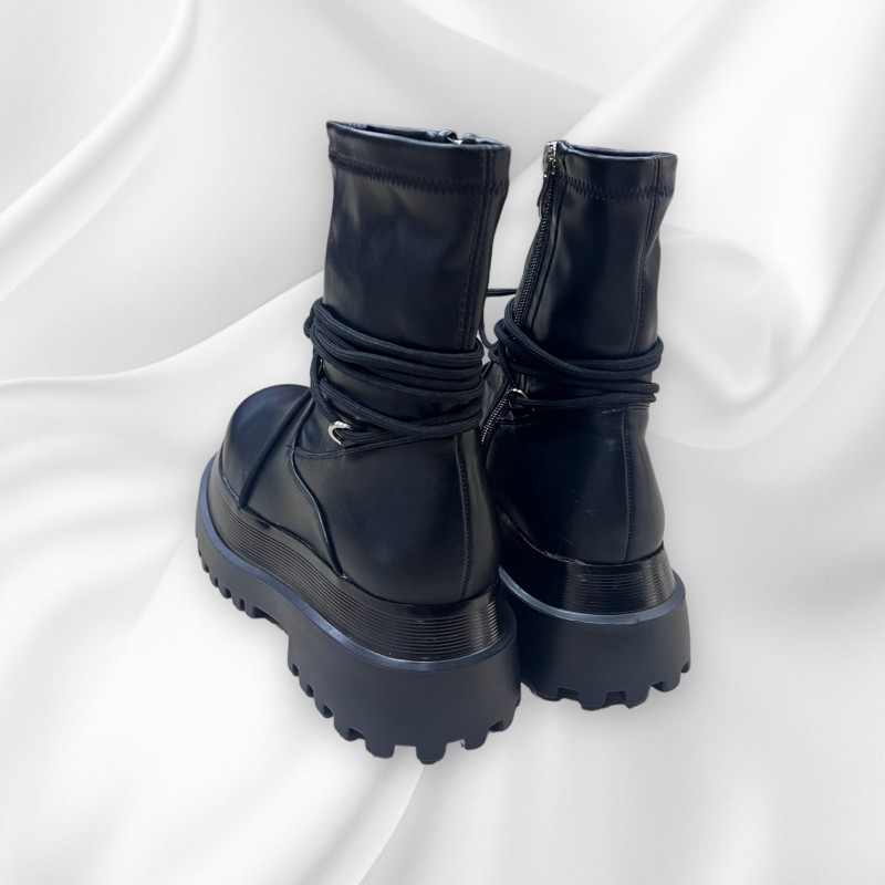 Anfibi, modello a calzino con plateaux alto e dettagli con lacci. Made in Italy.
